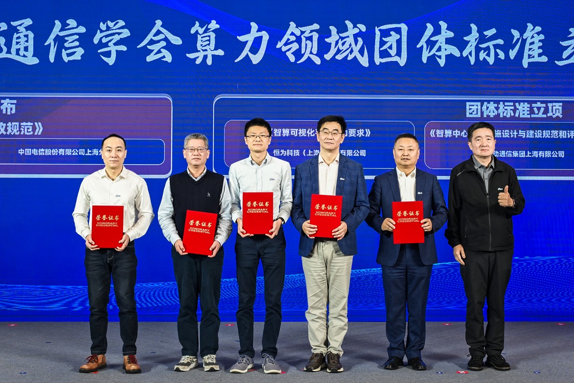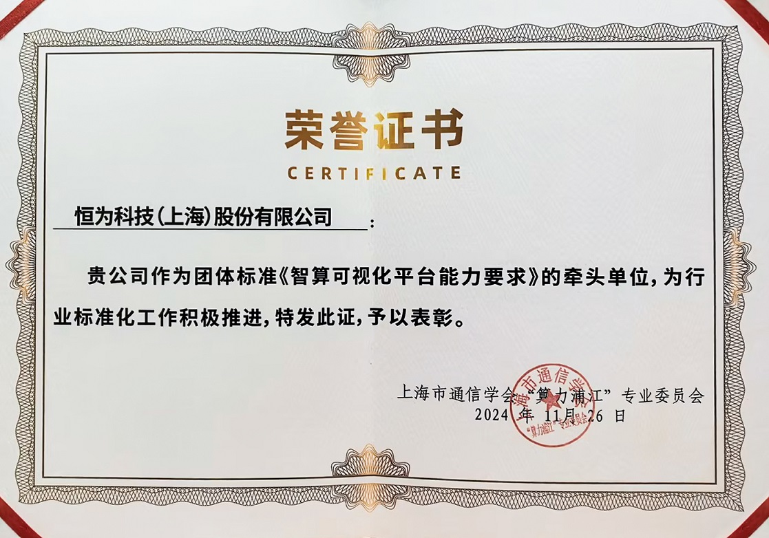 算力領(lǐng)域團(tuán)體標(biāo)準(zhǔn)發(fā)布與立項授牌環(huán)節(jié),由恒為科技牽頭、中國信通院華東分院等單位共同參與編制的《智算可視化平臺能力要求》團(tuán)體標(biāo)準(zhǔn)正式立項授牌。同時,鑒于恒為科技在推動行業(yè)標(biāo)準(zhǔn)化進(jìn)程中的突出貢獻(xiàn),上海市通信學(xué)會“算力浦江”專業(yè)委員會為恒為科技頒發(fā)了表彰證書。
