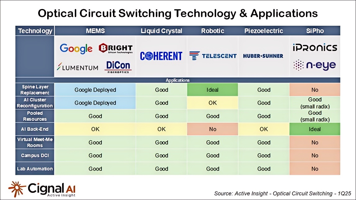 當(dāng)前光電路交換技術(shù)和應(yīng)用場(chǎng)景 - 來(lái)源:CignalAI 2025Q1