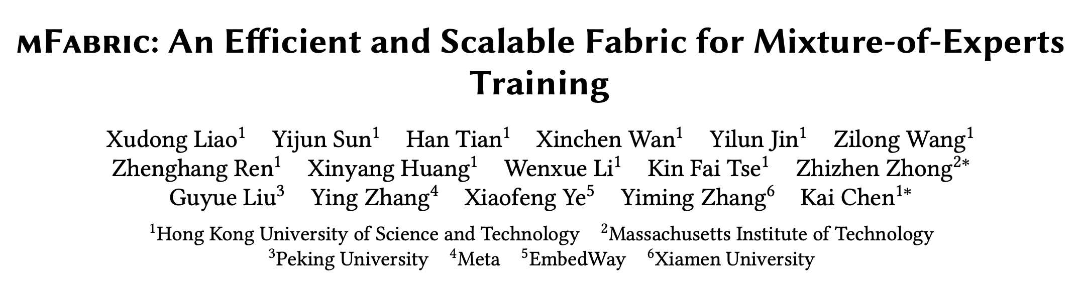 近日,香港科技大學(xué)智能網(wǎng)絡(luò)與系統(tǒng)實(shí)驗(yàn)室(iSING Lab)的論文MixNet被國(guó)際通信網(wǎng)絡(luò)領(lǐng)域頂級(jí)會(huì)議SIGCOMM 2025[1]接收,恒為科技作為研究團(tuán)隊(duì)成員之一,與麻省理工大學(xué)、北京大學(xué)、廈門(mén)大學(xué)、Meta一起提出了一種面向混合專(zhuān)家模型訓(xùn)練的光電混合可重構(gòu)網(wǎng)絡(luò)架構(gòu),用區(qū)域性動(dòng)態(tài)拓?fù)浯蚱旗o態(tài)網(wǎng)絡(luò)的性能與成本瓶頸。