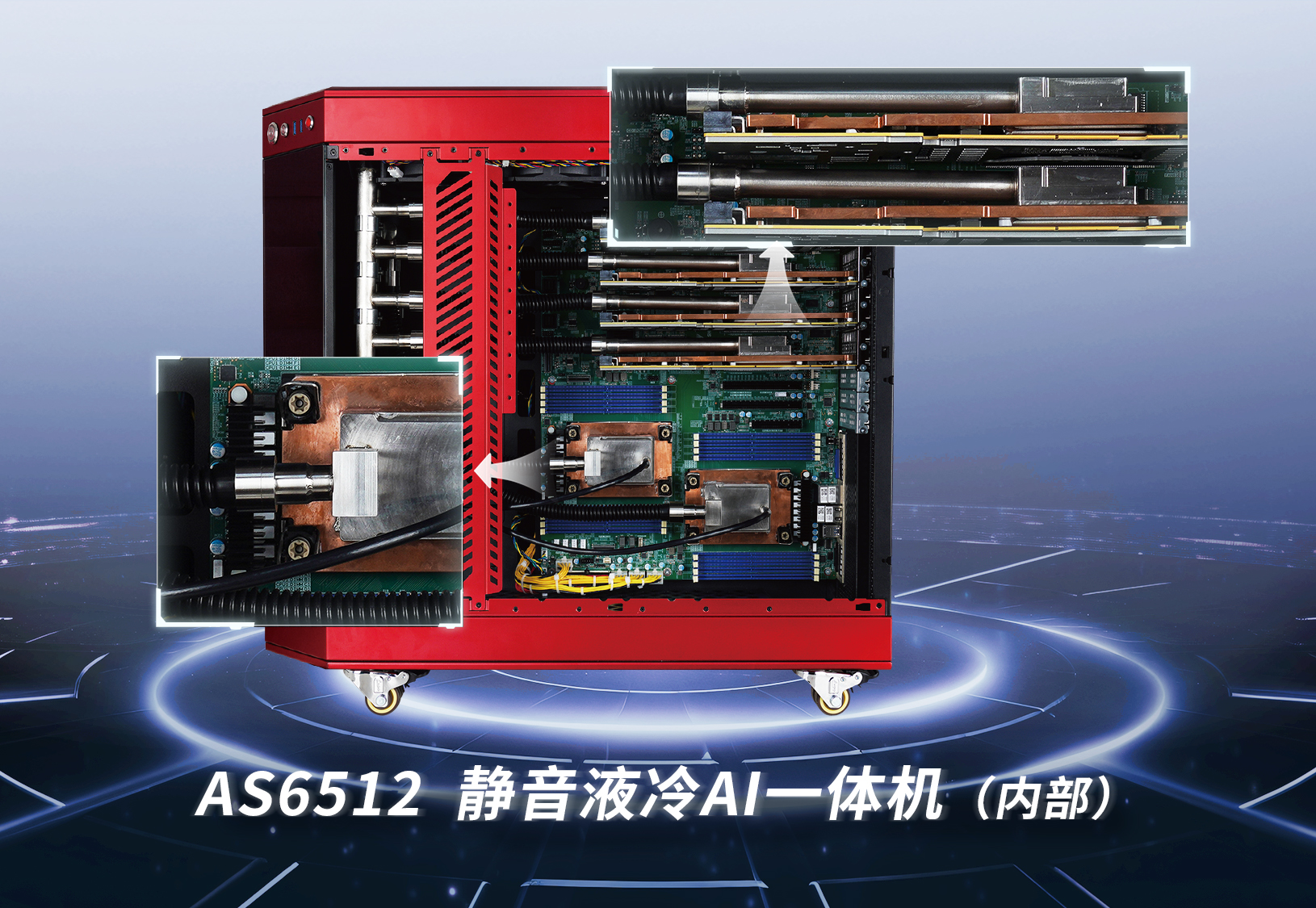 AS6512靜音液冷AI一體機(jī)采用塔式結(jié)構(gòu),設(shè)計(jì)緊湊合理,占地面積小。該產(chǎn)品創(chuàng)新地采用先進(jìn)的自驅(qū)環(huán)路熱管LHP液冷技術(shù),其CPU處理器、AI加速芯片等核心單元采用LHP冷板散熱,相比傳統(tǒng)液冷方案具有免維護(hù)、零漏液風(fēng)險(xiǎn)、超靜音、精密溫控等優(yōu)勢,散熱效能提升的同時(shí)功耗降低,適用于辦公、教育(教室、實(shí)驗(yàn)室)等對噪音敏感的人機(jī)共存環(huán)境,滿足AI大模型推理服務(wù)的本地化部署需求。